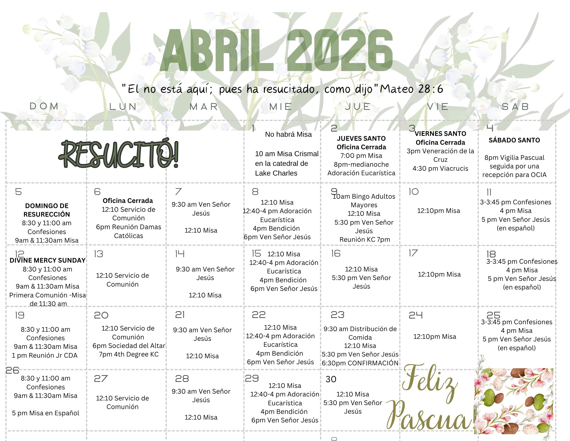 With so many ways to be part of parish life, you'll want to stay informed by regularly reading the weekly bulletin, just in case you've misplaced the one you received at Mass. You’ll also want to check the parish calendar for a list of events and mass schedules.